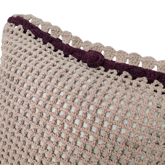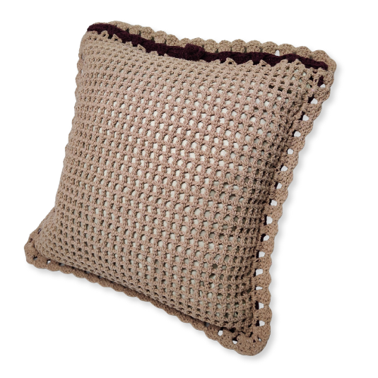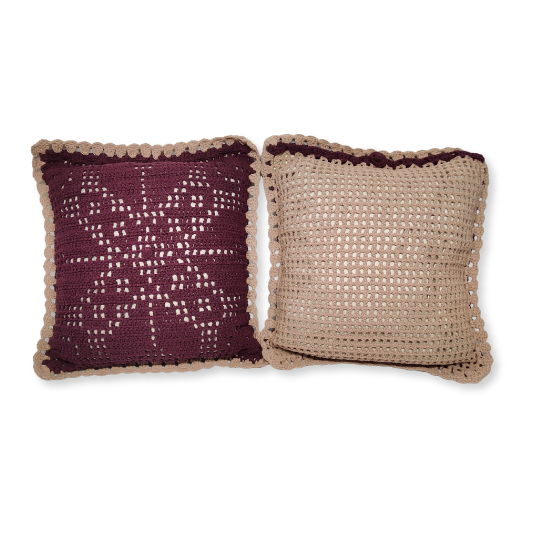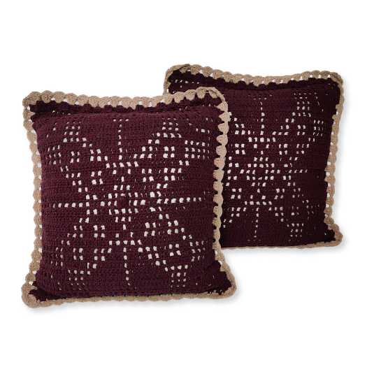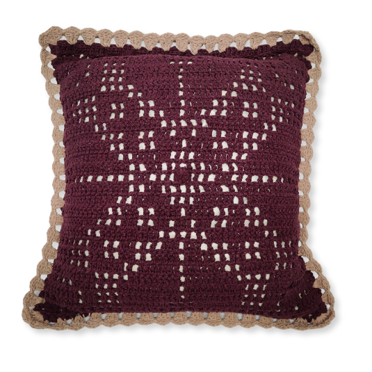 — Confeccionada em linha 85% algodão na cor #420b19 fio 6. Almofada interna de Cetim.