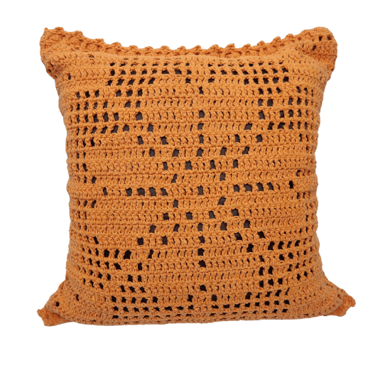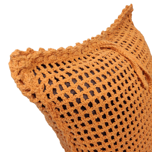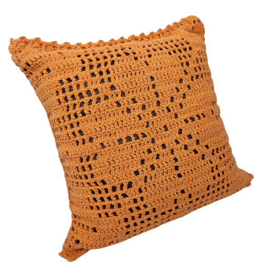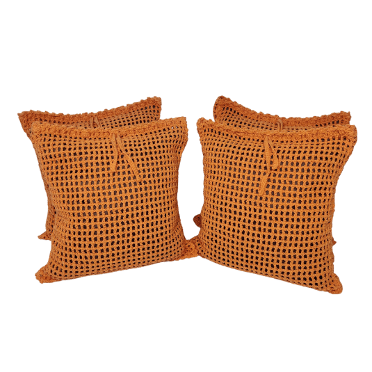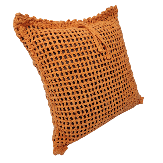 — Confeccionada em linha 85% algodão na cor Cenoura fio 6. Almofada interna de Cetim.
