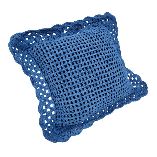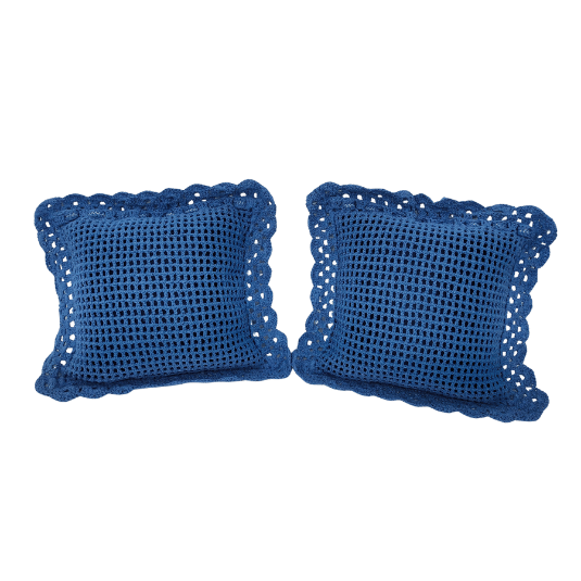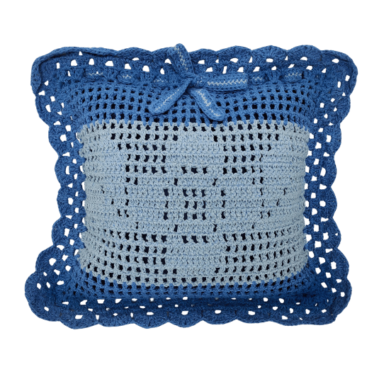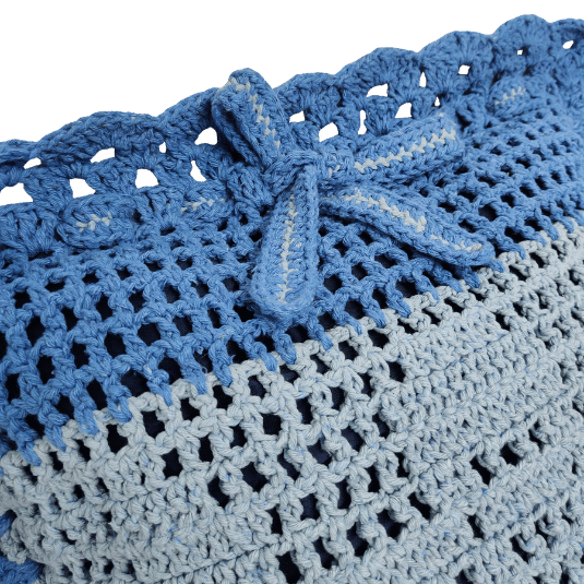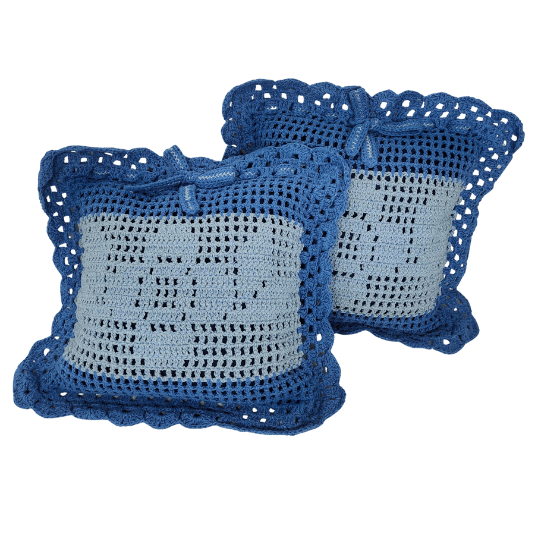 — Confeccionada em linha 85% algodão na cor Azul Escuro fio 6 e cor Azul Claro fio 8. Almofada interna de Cetim.